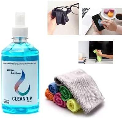 1 Limpa Lentes 500ml + 3 Flanelas Microfibra Ideal na limpeza de óculos, TV, Celulares e telas